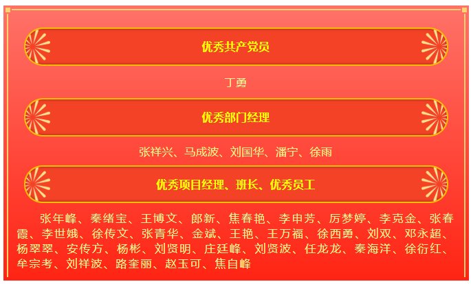 会上对获得“优秀共产党员”、“优秀部门经理”、“优秀项目经理”、“优秀班长”、“优秀员工”等荣誉称号的38名先进个人进行了隆重表彰。![]()